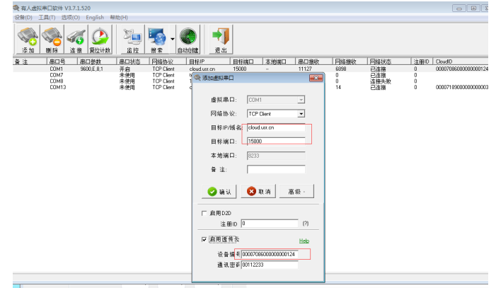2.選擇COM口,需要與后面設(shè)置的虛擬串口一致。