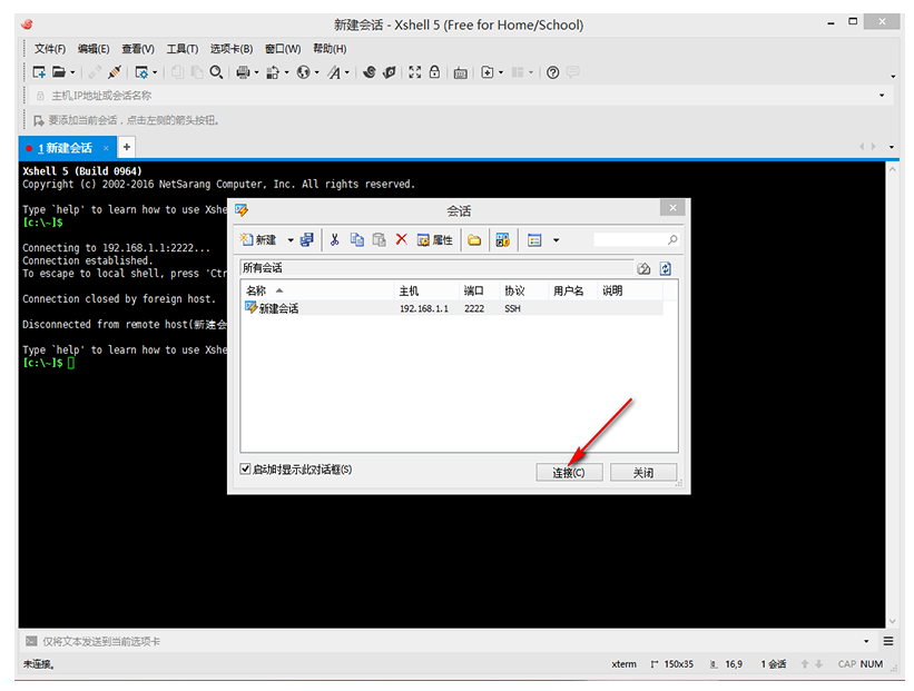 步驟三,打開軟件,點擊“新建”,協(xié)議選為ssh主機(jī)填寫192.168.1.1 ,端口號填寫2222,點擊“確定”按鈕,進(jìn)行下一步。