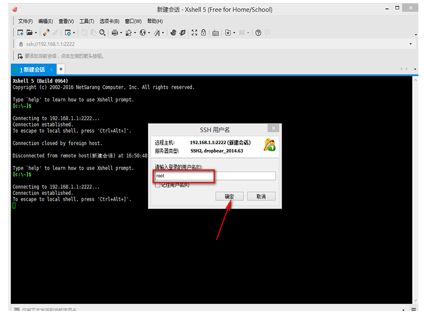 步驟六,用戶名和密碼都為root,點擊確定登陸