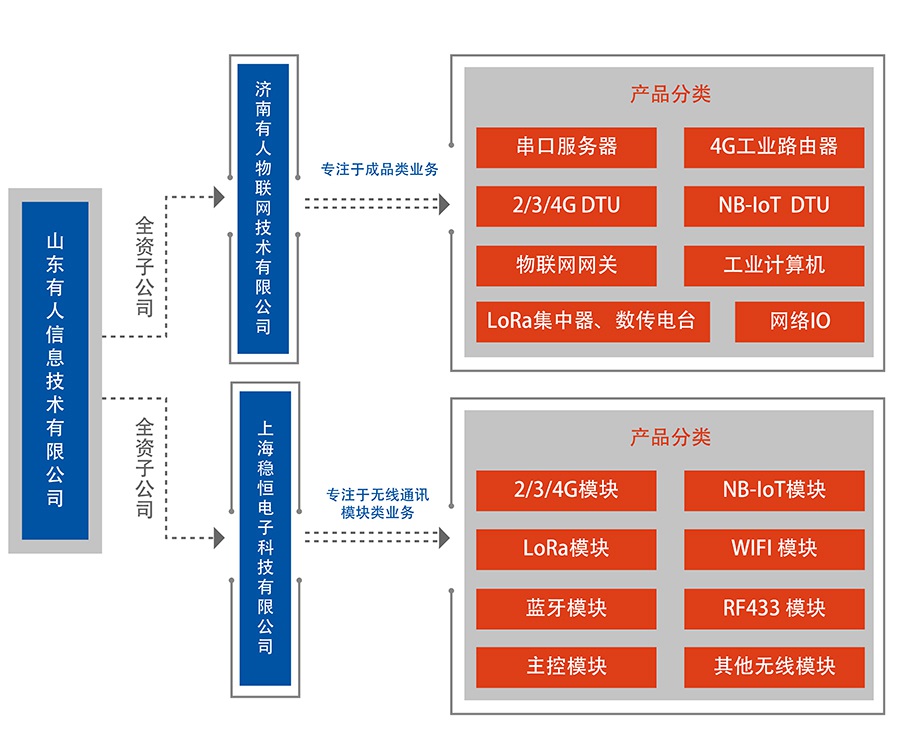 根據(jù)山東有人的發(fā)展規(guī)劃,自2018年1月1日起,山東有人旗下的無線通訊模塊類產(chǎn)品的研發(fā)、生產(chǎn)和銷售全部交由子公司上海穩(wěn)恒負責,子公司濟南有人則承擔所有成品類產(chǎn)品的研發(fā)、生產(chǎn)與銷售,二者獨立核算,獨立運營。(后附具體的產(chǎn)品劃分)