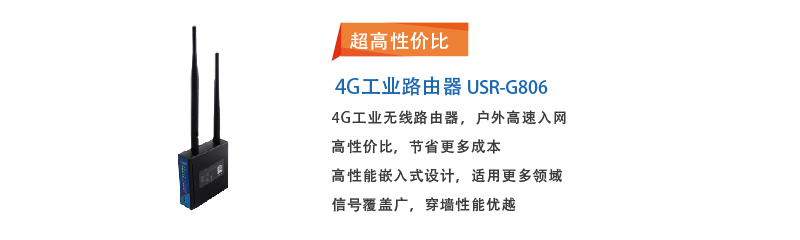 4G工業(yè)無線路由器一向是有人物聯(lián)網(wǎng)的“拳頭”產(chǎn)品,這次也成功“謀殺了一眾菲林”。USR-G806以高性價(jià)比聲名遠(yuǎn)播,為用戶提供戶外高速入網(wǎng)需求,信號(hào)覆蓋廣、穿墻性能優(yōu)、嵌入式設(shè)計(jì),適用諸多領(lǐng)域。