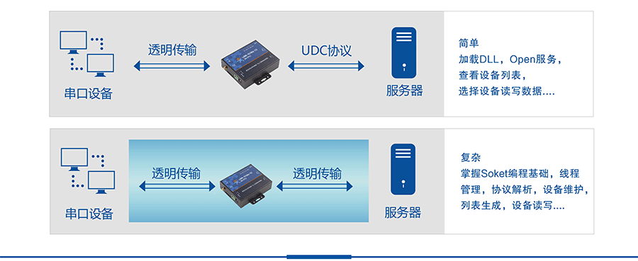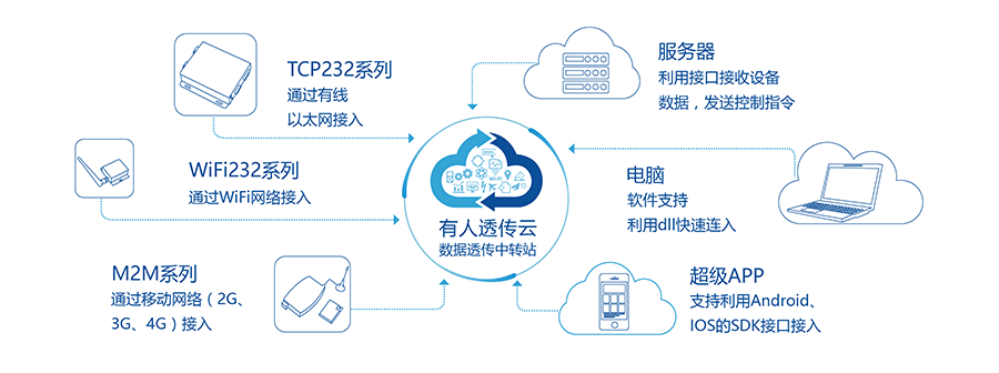 提供了服務器端二次開發(fā)包,用戶掌握設備的上線情況和數(shù)據(jù)傳輸,既方便了用戶開發(fā),也提高了服務器端的統(tǒng)一性、穩(wěn)定性和可靠性。