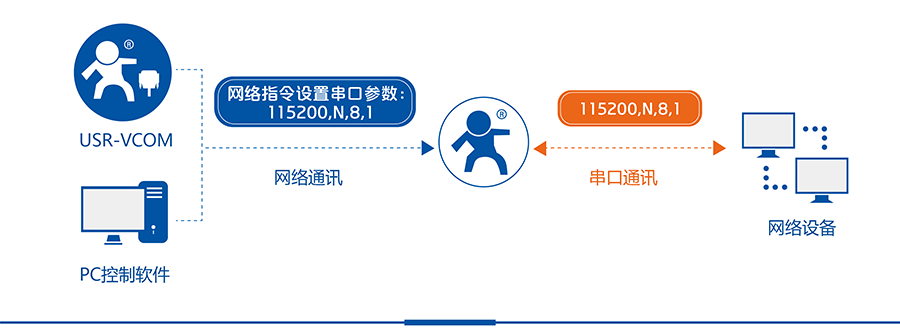 支持網絡發(fā)送有人同步波特率協(xié)議,動態(tài)改變串口波特率、數(shù)據(jù)位、校驗位、停止位。