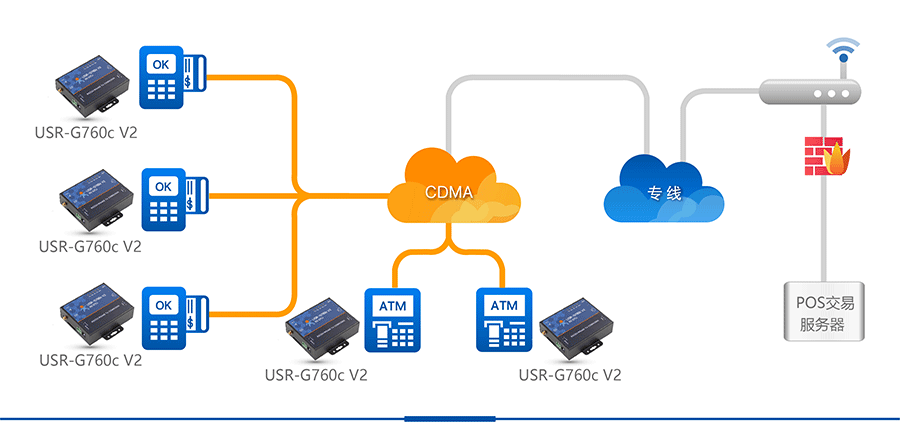 在零售行業(yè)中,無線POS機和ATM機使用3G DTU實現(xiàn)遠程聯(lián)網,實現(xiàn)安全支付、簡單便利。