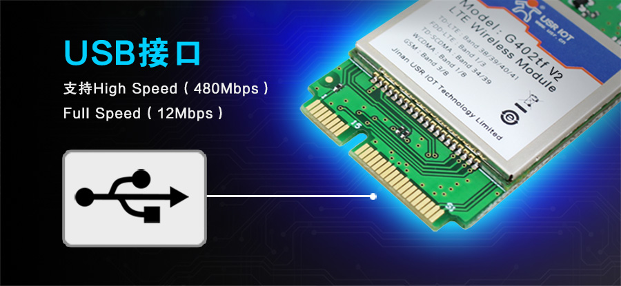 USR-G402tf是一款五模十二頻4G模塊,適用于需要高速數(shù)據(jù)傳輸與需要大數(shù)據(jù)量穩(wěn)定傳輸?shù)挠脩?。?b>LCC和mPCIe兩種封裝。支持移動(dòng)/聯(lián)通2G、3G、4G和電信4G網(wǎng)絡(luò)高速接入。