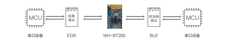 在該模式下,BT200可以實(shí)現(xiàn)經(jīng)典藍(lán)牙設(shè)備與低功耗藍(lán)牙設(shè)備之間相互通信。