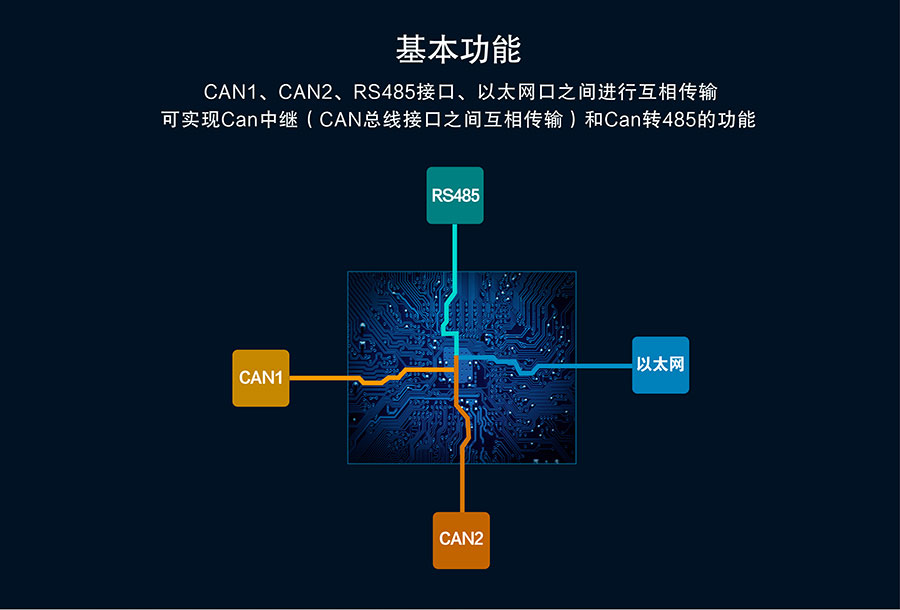 能實(shí)現(xiàn)CAN、以太網(wǎng)、RS485三者互轉(zhuǎn),應(yīng)用靈活;
