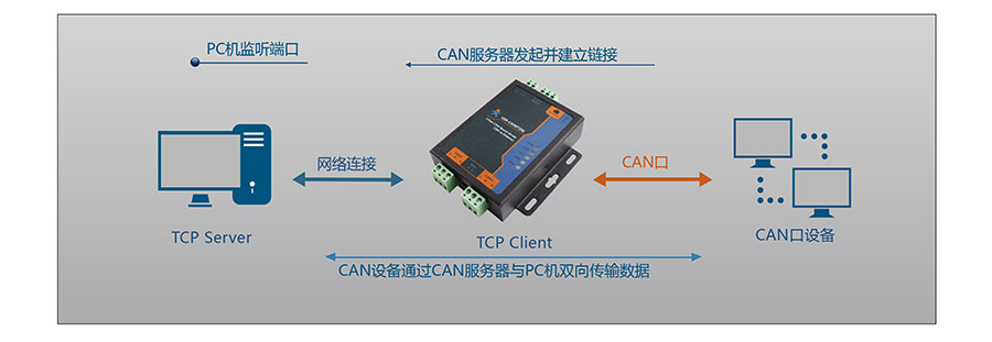 Can轉(zhuǎn)以太網(wǎng)服務(wù)器監(jiān)聽設(shè)定的端口并等待TCP客戶端連接。