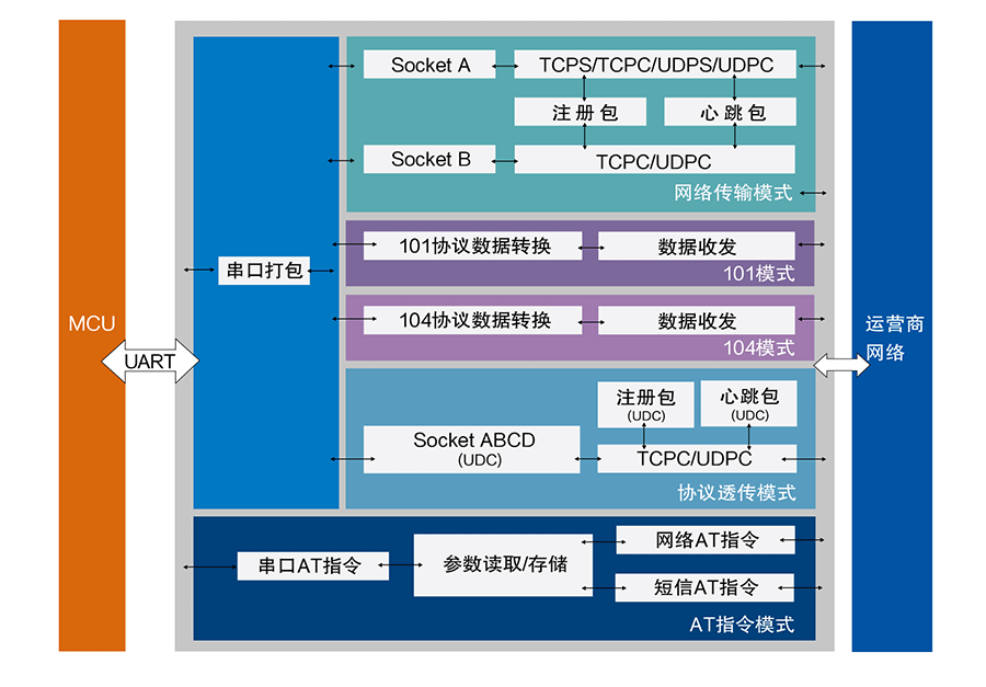 此模式下,用戶的串口設(shè)備可以通過DTU發(fā)送數(shù)據(jù)到指定的服務(wù)器上,DTU也可以將服務(wù)器的數(shù)據(jù)轉(zhuǎn)發(fā)到串口設(shè)備上。