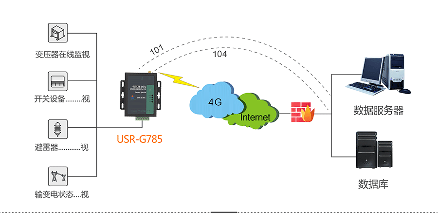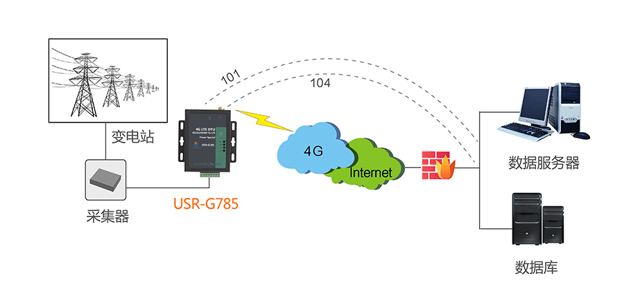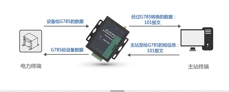 按照電力101協(xié)議傳輸數(shù)據(jù),DTU作為子站端的一部分,只需將數(shù)據(jù)通過串口發(fā)給DTU,USR-G785就會將101報(bào)文發(fā)送給服務(wù)器。