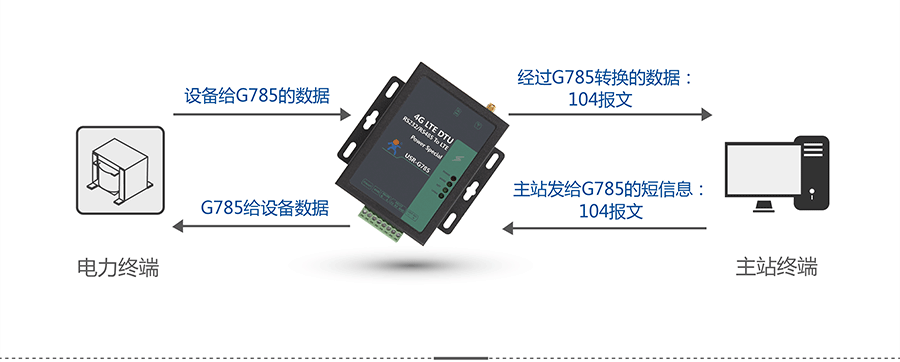 按照電力104協(xié)議傳輸數(shù)據(jù),DTU作為子站端的一部分,只需將數(shù)據(jù)通過串口發(fā)給DTU,USR-G785就會將104報(bào)文發(fā)送給服務(wù)器。