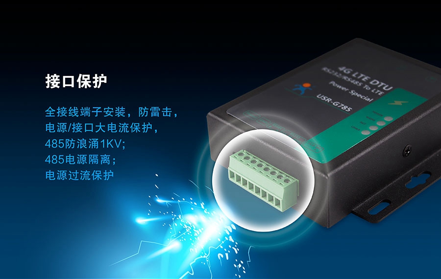 USR-G785 是一款高穩(wěn)定、抗干擾的工業(yè)級無線數(shù)據(jù)傳輸終端,專為電力行業(yè)設(shè)計(jì),為苛刻環(huán)境下無人值守的電力項(xiàng)目,提供穩(wěn)定的網(wǎng)絡(luò)通信。既可以實(shí)現(xiàn)常規(guī) DTU 的數(shù)據(jù)透傳功能,也可以實(shí)現(xiàn)電力專屬協(xié)議透傳功能。通過簡單的 AT指令進(jìn)行設(shè)置,即可輕松使用本產(chǎn)品實(shí)現(xiàn)串口到網(wǎng)絡(luò)服務(wù)器的雙向數(shù)據(jù)傳輸。