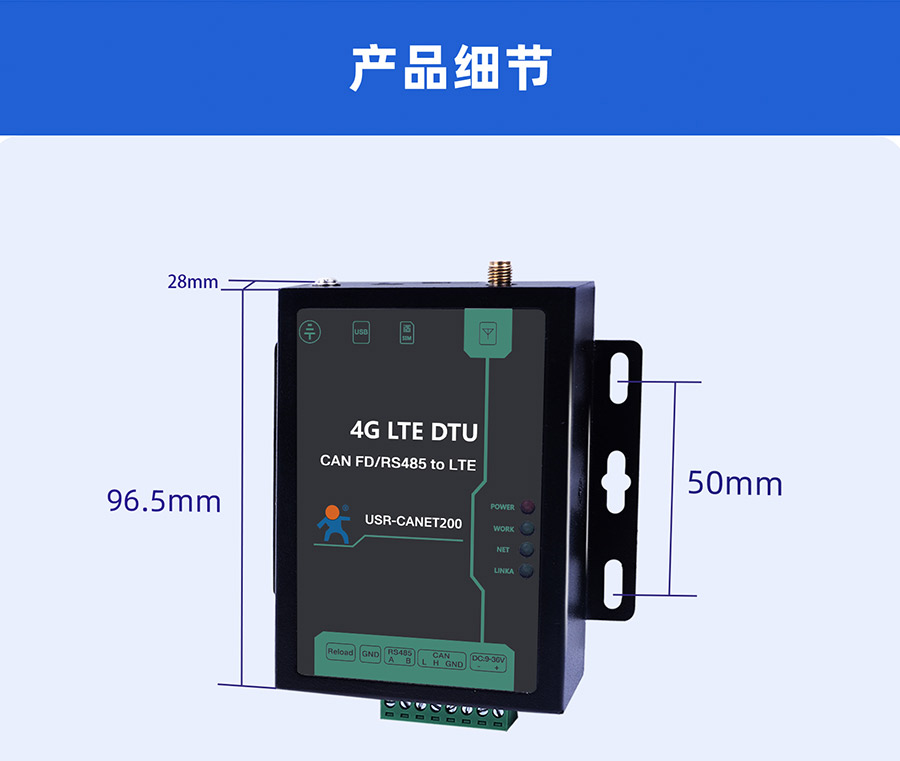 支持CAN和RS485,端子接口,波特率1200~460.8Kbps