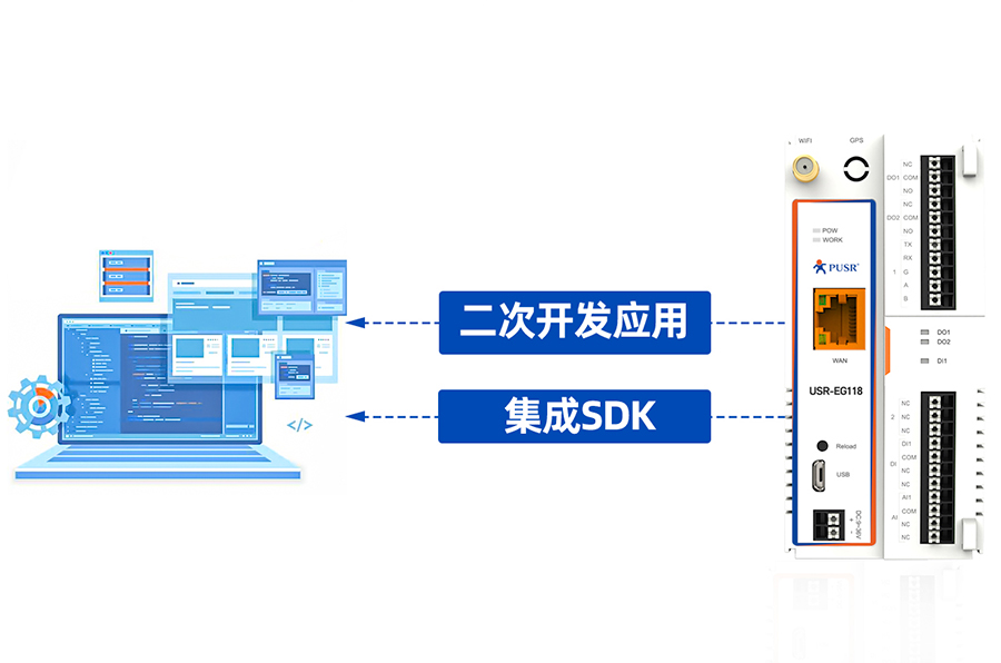 USR-EG118 |Arduino積木式開源網(wǎng)關(guān)控制器 ESP32 芯片組、C 語言SDK、Arduino IDE 開發(fā) USR-EG118 是一款集成了 ESP32 模塊的開源物聯(lián)網(wǎng)網(wǎng)關(guān)控制器。它采用雙核 Xtensa® 32位 LX6 MCU、240 MHz運(yùn)行頻率的處理器、8MB PSRAM 和4MB板載SPI Flash。隨著其集成WIFI/BLE模塊和額外的串口、以太網(wǎng)和可擴(kuò)展IO接口,該器件極大豐富了工業(yè)物聯(lián)網(wǎng)的解決方案。
