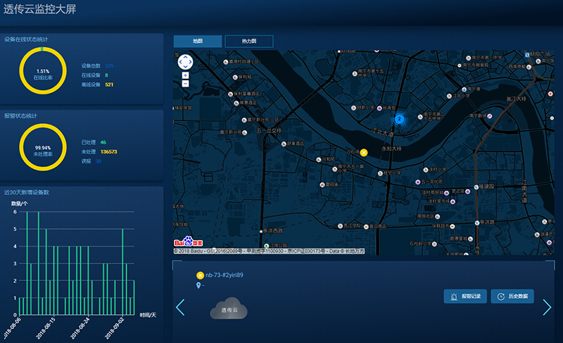 4、異常數(shù)據(jù)通過WH-NB73、透?jìng)髟苽鬏斨吝h(yuǎn)程監(jiān)控中心/服務(wù)器,預(yù)警提示工作人員,實(shí)時(shí)查看車輛信息,快速進(jìn)行調(diào)度、安排