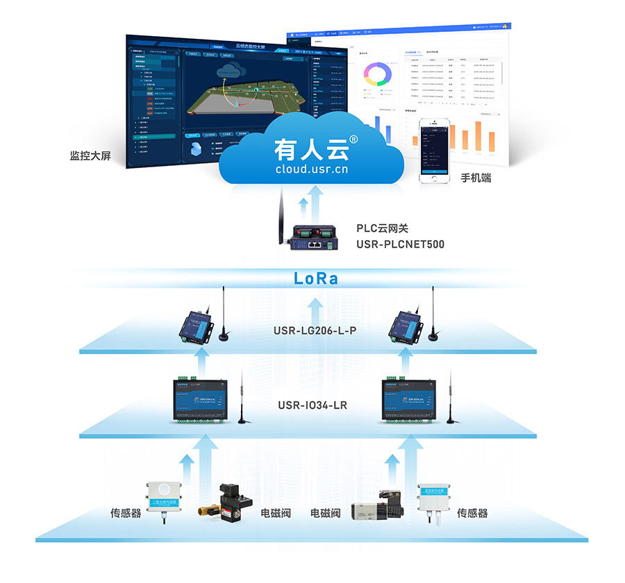 本案例基于LoRa無線通信技術(shù),將終端傳感器采集到的數(shù)據(jù)通過LoRa設(shè)備通訊,上傳至PLC;還可通過接收上位機工作指令,對終端電磁閥等設(shè)備進(jìn)行遠(yuǎn)程控制。